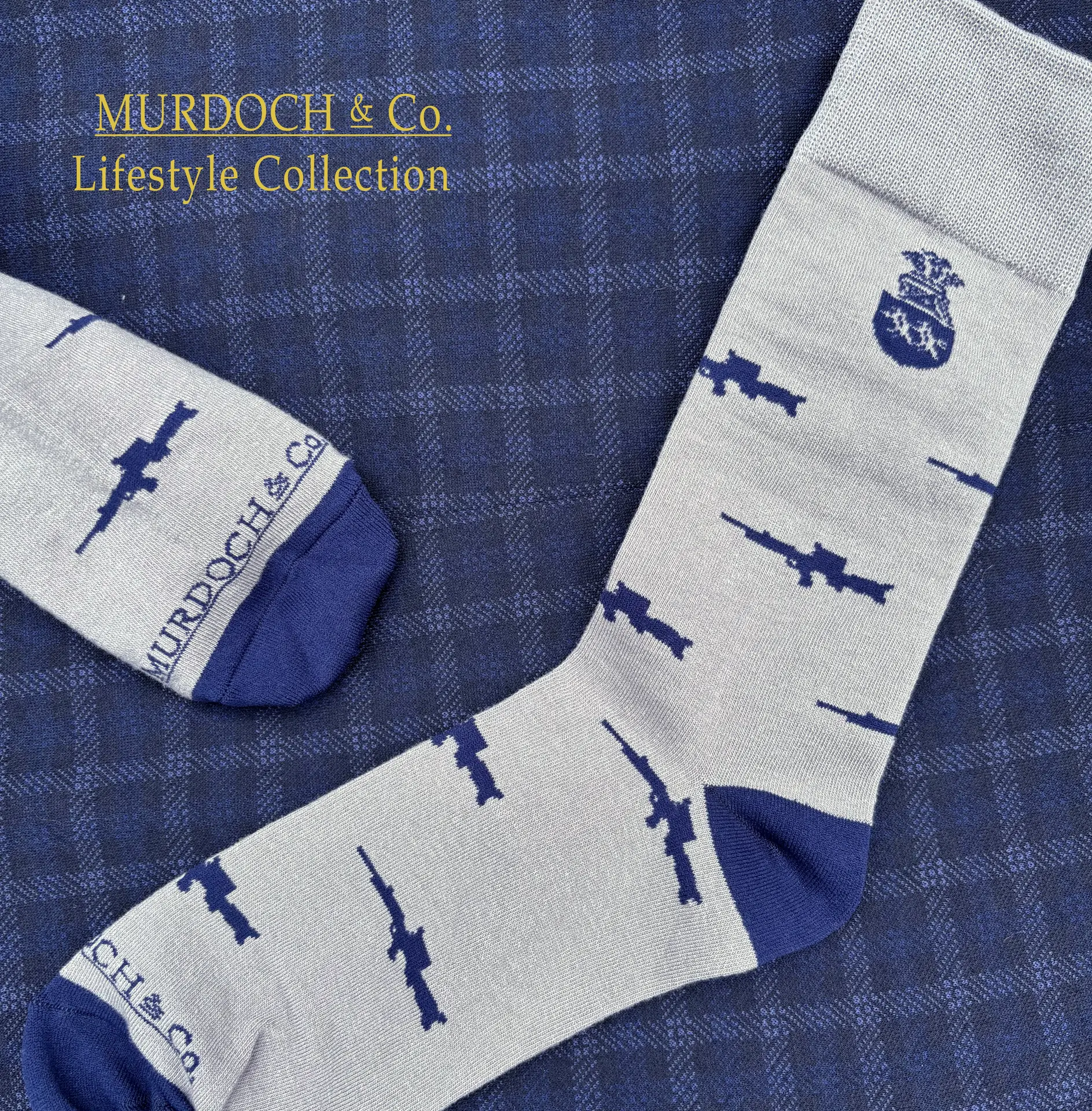 Show your support British firearms history and passion for the SA80 with out L85/EM85 Sock. Colored in ‘Murdoch and Co Heritage blue” and “Steel Grey” this sock proudly shows the silhouette of this iconic rifle.